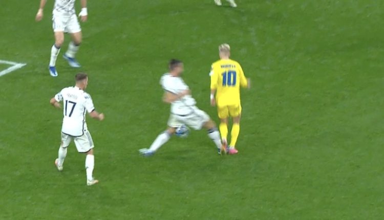 Момент с неназначенным пенальти в матче Украина – Италия / Кадр с видео В понедельник, 20 ноября, сборная Украины по футболу играла заключительный матч группового этапа по отбору к Евро-2024. Соперником «сине-желтых» был действующий чемпион Европы сборная Италии. Источник: UA–Football 3 мин ФУТБОЛ Поделиться Для выхода на Евро-2024 подопечным Сергея Реброва нужно было одерживать победу. Встреча закончилась со счетом 0:0, что устроило итальянцев, которые в итоге и отобрались на турнир Самый резонансный момент в этом напряженном матче состоялся уже в компенсированное время, когда Михаил Мудрик пробросил себе мяч в штрафной и был сбит защитником сборной Италии Брайаном Кристанте. Украинец упал на газон, однако арбитры в поле и VAR проигнорировали этот эпизод, который мог решить судьбу путевки на чемпионат Европы. Смотрите видео с падением Мудрика в матче против Италии Этот скандальный момент прокомментировал судейский эксперт и бывший рефери ФИФА Мирослав Ступар. Он отметил, что в течение матча арбитр хорошо справлялся с работой, однако в самый ответственный момент судейская бригада допустила ошибку. Испанец выбрал стиль, который для наших арбитров не присущ. И его команды воспринимали. За отдельными исключениями. Где-то были эмоции, апелляции. Однако в целом Хиль Мансано был последовательным. Вот только момент с Мудриком… Михаил часто «дорисовывает», красиво падает. Было несколько падений раньше, на которые судья не среагировал, хотя у нас такое фиксировали бы как фолы. А вот в момент с Кристанте именно Мудрик проткнул мяч, нога итальянца оказалась барьером для украинца и об этот барьер Мудрик споткнулся. И рухнул на газон. Арбитр в поле не среагировал, и так же не среагировал арбитр ВАР. Я думаю, если бы Мансано пошел смотреть повтор – то никуда не делся бы от решения поставить пенальти, Отметим, что в результате Украина заняла третье место в группе «С» и не отобралась напрямую на Евро-2024, несмотря на одинаковое количество очков с итальянцами. Однако «сине-желтые» все еще могут попасть туда через раунд плей-офф. Для этого нашей сборной предстоит обыграть двух соперников. Каких именно пока неизвестно – жеребьевка состоится 23 ноября Справка. Евро-2024 будет проводиться в Германии и продлится с 14 июня по 14 июля. Действующим чемпионом Европы является сборная Италии.Комментарий судейского эксперта по поводу неназначенного пенальти