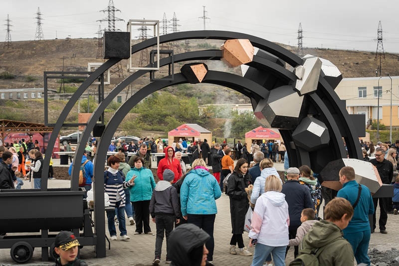 Особое внимание привлекают авторские арт-объекты: «Трон из перфораторов», вдохновлённый «Игрой престолов», и стела горняков — динамичная скульптура из бурового оборудования. Оба объекта сочетают промышленную эстетику и художественную выразительность.